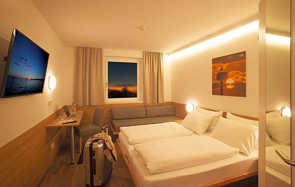 Fantastic hotel, great location for a stop over. Two restaurants about 20m away. Room was spacious and very clean. The view from the window (back side of the hotel) - OMG!!!! Staring straight at the Austrian Alps !! Stunning. Breakfast was lovely. Staff were lovely.
