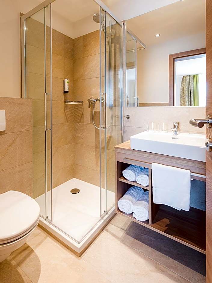 Free hotel beach spot with free of charge changing rooms, toilets, chairs, umbrellas and paddle boards. Plus there was a bar with some food and drinks at the beach as well. The door to the bathroom were actual wooden door, providing more privacy. Big balcony with drier - helped with drying swim suits. Good location, next to the town (super market, restaurants) and 15 minutes from Klopeinersee lake. Dinner in hotel's restaurant was good and maybe a bit too luxurious looking. Personel spoken English on most occasions.