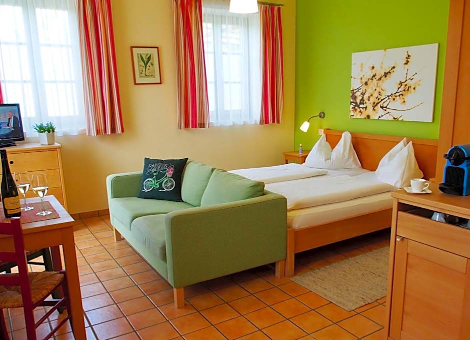 We enjoyed our stay! The hotel is beautifully build in a nice farm. Nice small sauna next to a beautiful ecological pool. Breakfast was excellent with Rich buffet. I got gluten free bread for my request. New spacious apartment with big kitchen for self use. Excellent service. Owner was very generous, friendly and helpful with all our requests. We had nice walks in the surrounding, and used local bus to get to near by locations for hiking on the Wachau trail.