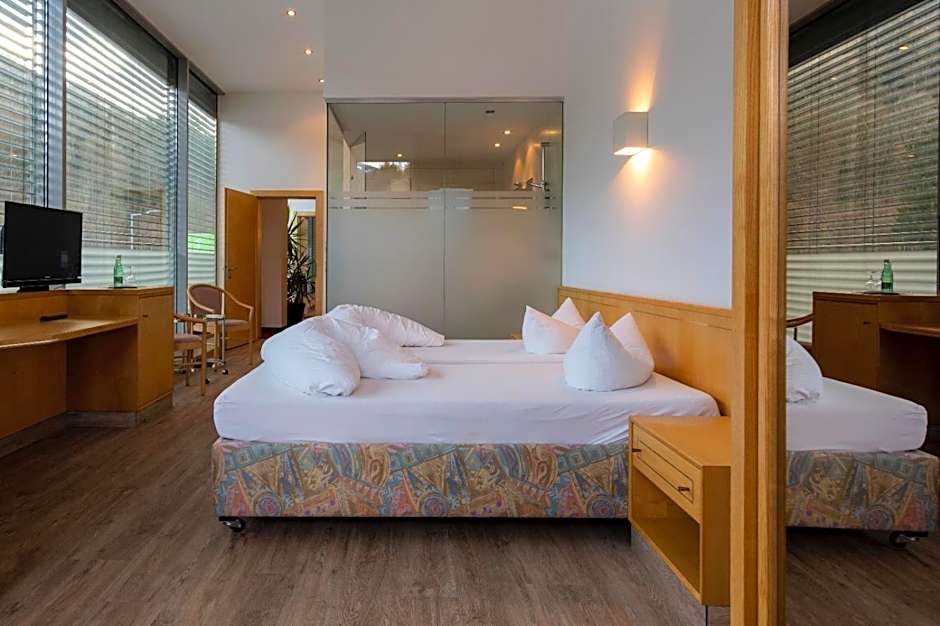 Attractive hotel with good facilities on the edge of the town centre. The hotel has a very good restaurant with a well priced option for residents. The breakfast buffet was good. Our room was spacious and comfortable. Free on site parking. The owner and the night waitress were very welcoming and helpful.