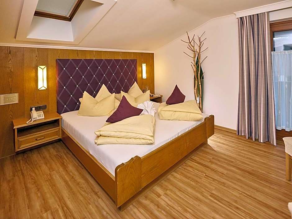 Typical Tyrolean hotel, with clean and comfortable rooms. Half board with many options, salad buffet, soups of your choice and 7 courses of your choice. Breakfast with hot products and various cold cuts and cheeses. Available parking, a heated ski room and the bus stop right in front of the property complete the hotel's facilities.