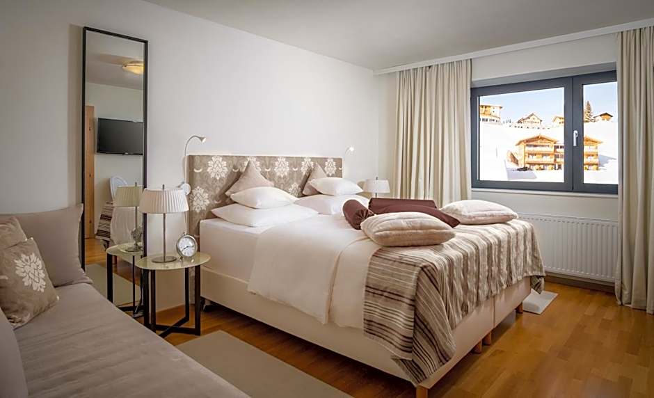The property is very conveniently located on the slopes of Oberlech for ski in and ski out access. large and bright rooms with exceptionally nice decor. beautiful and big spa with plenty of relaxation options. The food is great and menu is very diverse. WiFi is excellent in every place and room at the hotel.
