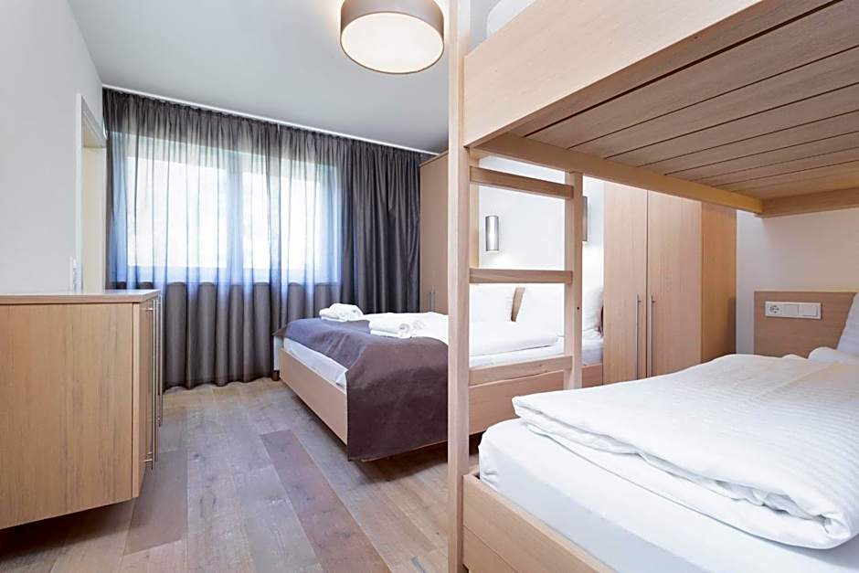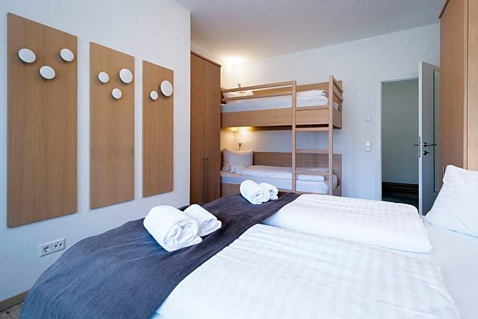 Each unit comes with a kitchen equipped with kitchenware, non-smoking rooms, soundproofing, and views of the mountains—the ideal setup for convenient self-catering stays after a day on the trails. A variety of apartment configurations is available, including the Penthouse Apartment with Terrace, as well as 1- to 3-bedroom options with balconies or terraces, all accommodating 2 adults and 1 child.