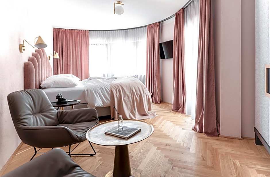 The hotel offers several types of rooms. The Comfy Room, Casual Room, and Deluxe Double Room are all double rooms with a king-size bed and a room size ranging from 194 to 323 sqft. The Junior Suite, Suite with Mountain View, Charming Suite, and Family Suite are all suites with a king-size bed, larger room sizes ranging from 377 to 646 sqft, and accommodate either 2 or 3 adults. All rooms and suites are non-smoking.