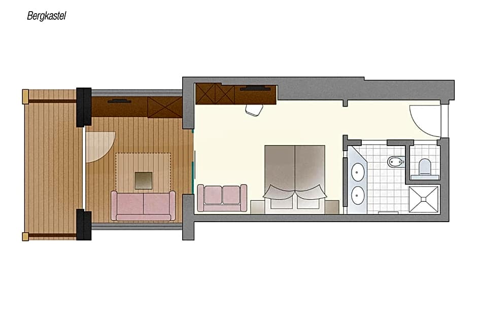 Has a balcony either facing south-east or north-west and consists of a combined living/bedroom with bathroom and bathrobe.