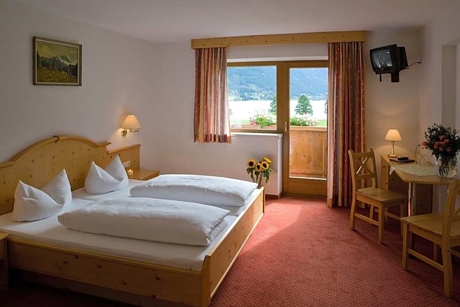 The hotel reception area and restaurant are lovely - very traditional Tirolean. We had a standard double room that had an extra space for sitting - lovely. The bed was very comfy and the room was very clean. Dinner and breakfast was delicious and the service was super. We had a view of the lake and the mountains which was fabulous.