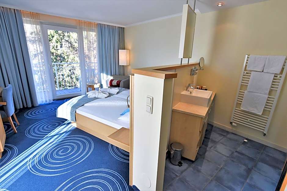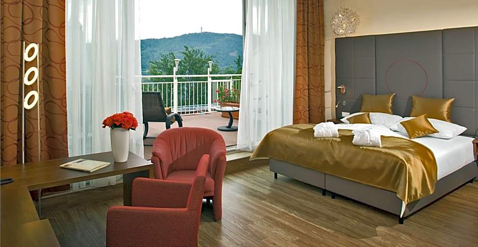 Spacious room with a 20 ft² balcony offering scenic views over Lake Wörth.