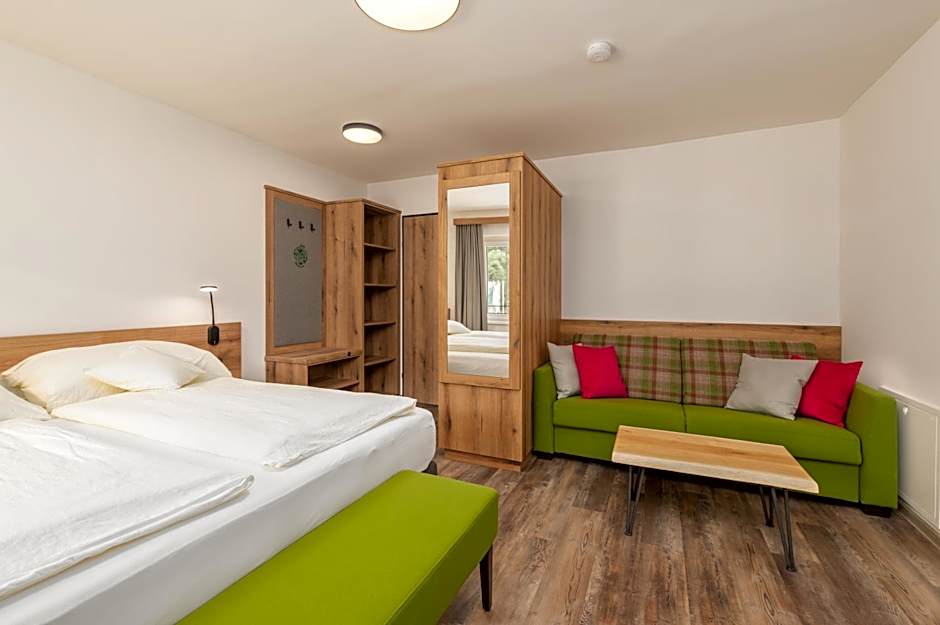 Rooms showcase garden or river views and come non-smoking, with a selection of options including Family, Single, and King layouts, some featuring balconies. These accommodations comfortably host 1–2 adults, providing a simple, inviting base for alpine explorations.