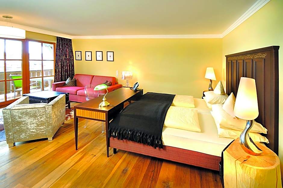 Hotel Alpine Palace offers a variety of room options including Family Suites, Deluxe Double Rooms, Superior Suites, Presidential Suites, Junior Suites, Family Studios, and Deluxe Junior Suites. Smoking is not allowed in any of the rooms. The rooms range in size from 431 sqft to 1292 sqft and can accommodate between 2 and 4 adults, with some rooms also accommodating children. The beds available include King size beds, Twin beds, and Sofa Beds.