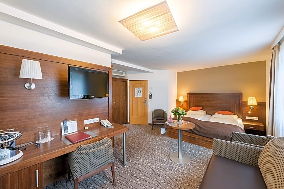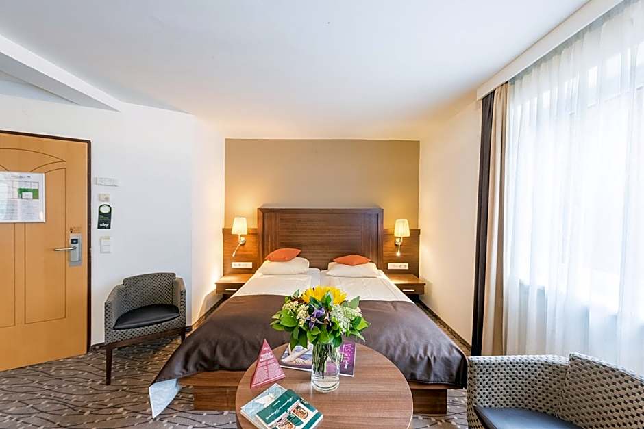 is a four-star hotel in Salzburg, Austria, located about from the city center. Free Wifi, air conditioning, and soundproof rooms help ensure a comfortable stay, while non-smoking options keep things fresh for every guest.