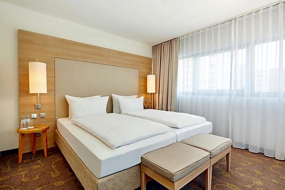 The H+ Hotel Salzburg offers Comfort Double or Twin Rooms and Superior Double Rooms. The Comfort Double or Twin Rooms have a room size of 258 sqft and accommodate 2 adults and 1 child. They have 1 queen-size bed and 2 twin beds. Smoking is not allowed. The Superior Double Rooms have a room size of 291 sqft and also accommodate 2 adults and 1 child. They have 2 twin beds and smoking is not allowed.