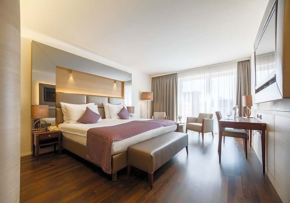 This modern junior suite faces the courtyard and offers oak wood floors and a bathroom with bathrobes.