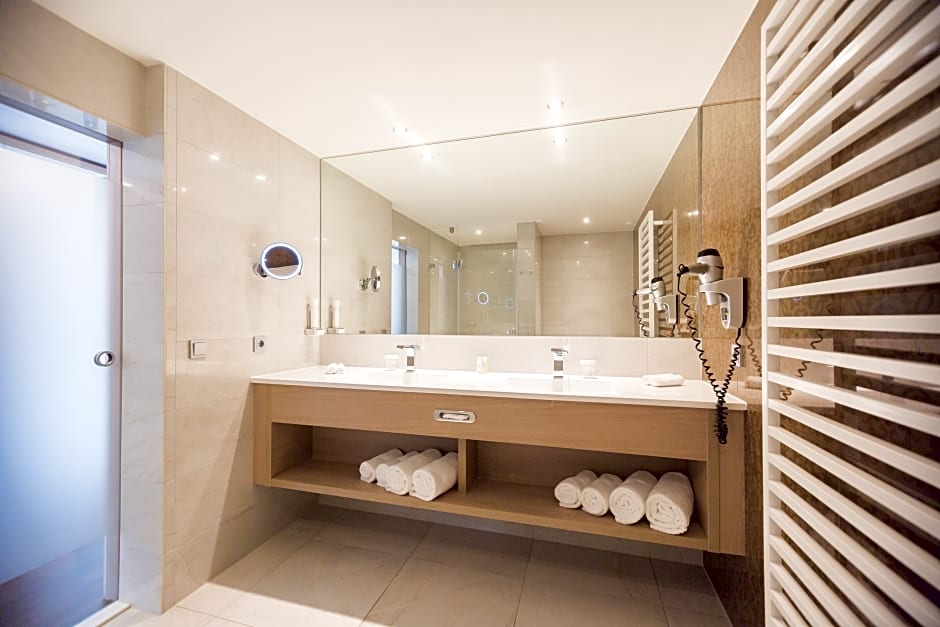 This modern junior suite faces the courtyard and offers oak wood floors and a bathroom with bathrobes. Please note that extra beds are not available in this room type.