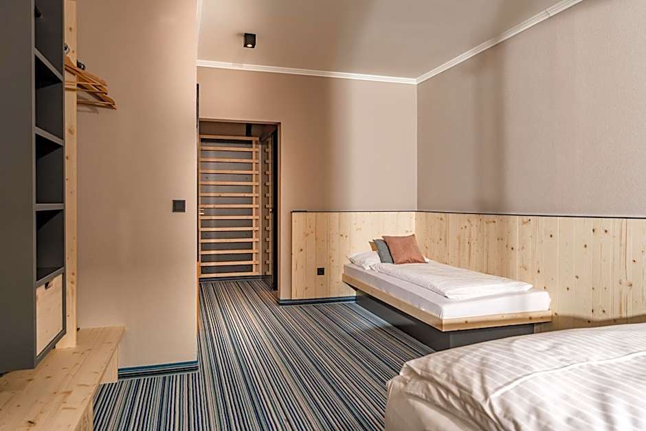 Hotel Ferienalm offers two types of rooms: Family Rooms with Balcony and Family Rooms with Terrace. Both room types are non-smoking and cater to families. The Family Room with Balcony is larger, with a size of 700 sqft and can accommodate 2 adults and 2 children, with 2 Twin beds and 1 Queen size bed. The Family Room with Terrace is smaller, with a size of 269 sqft and can accommodate 3 adults and 1 child, with 1 Sofa Bed and 1 Queen size bed.