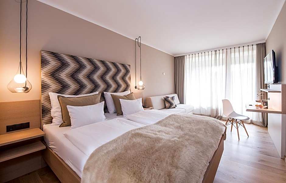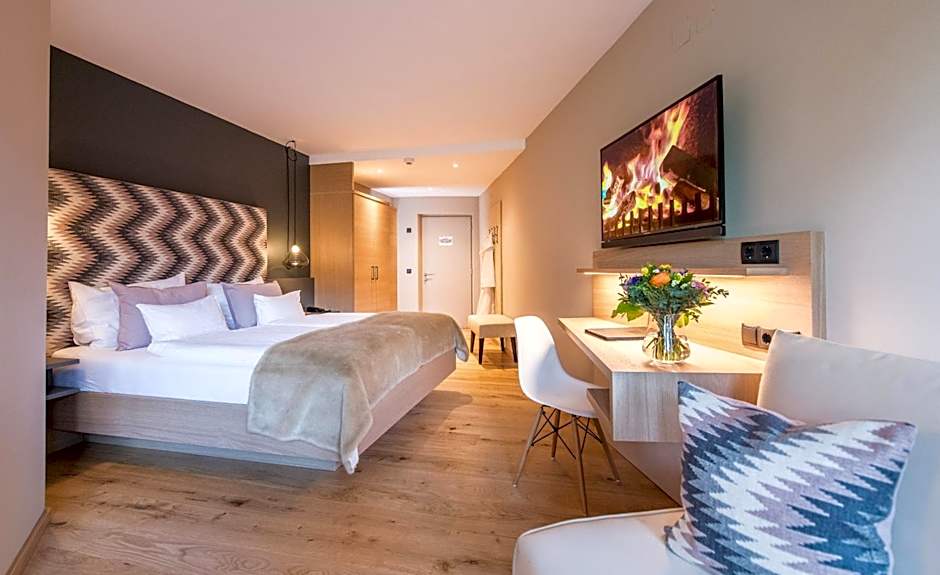 Hotel Moserhof offers a variety of room types including Deluxe Rooms, Comfort Double Rooms, Junior Suites, and Studio options. The rooms do not allow smoking and comfortably accommodate either 1 adult or 2 adults. Bed sizes range from Twin beds to King and Queen size beds, offering a comfortable stay for guests. Room sizes vary from 172 sqft to 388 sqft, providing ample space for a relaxing stay.