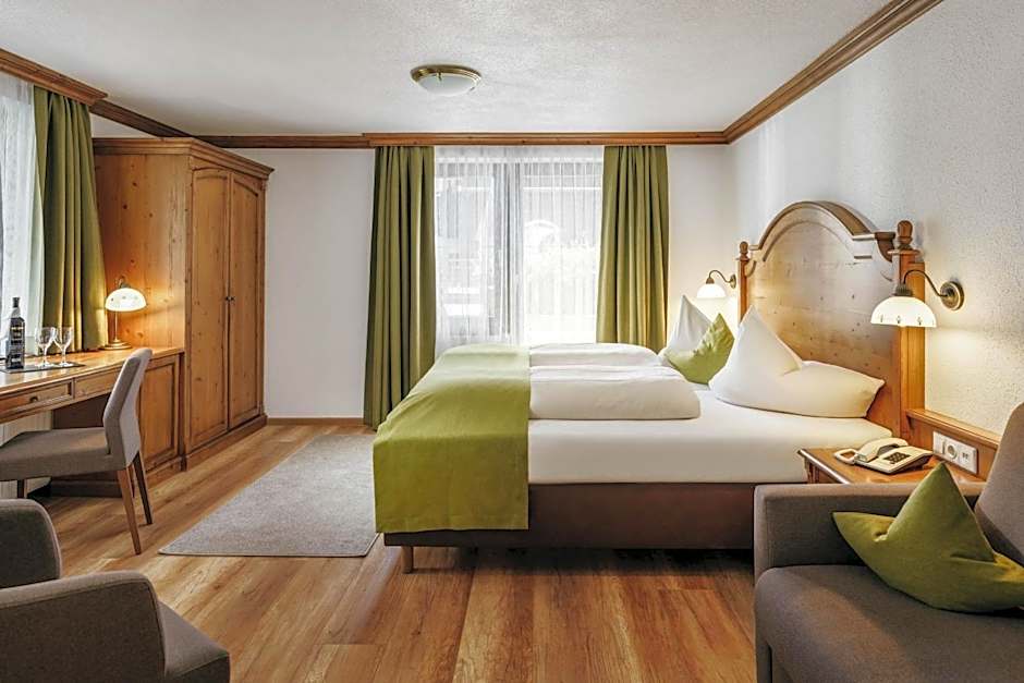Spacious room in Tyrolean country-house style, separate living area, with seating on the balcony. 2 extra beds are possible.