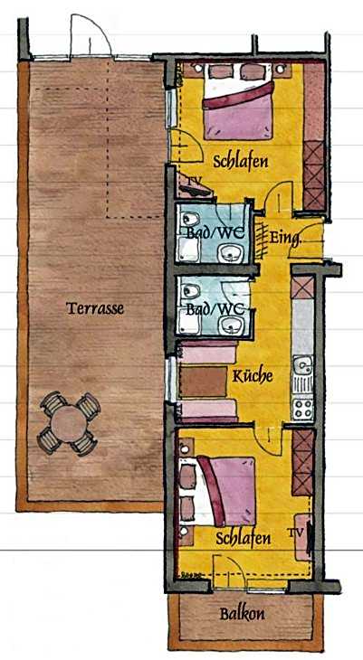 Great value for the price, 2 bathrooms, location in city center, very comfortable swimming pool/ sauna area. Across the street there is a nice bakery. Top for wintersport: rent a locker at the ski lifts, although the walk is not too long it can be quite strenuous with all wintersport gear.