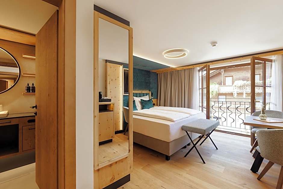 Wellness takes center stage with a spa that includes Turkish/Steam Bath, Steam Room, and Sauna, all complimentary, plus a fitness center and spa/wellness packages. Outdoors, an adults-only heated infinity pool provides a breathtaking view, perfect for a relaxing break after a day on the Alps.