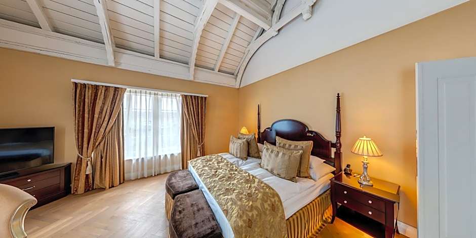 Luxurious suite with a rooftop terrace and a private sauna. The suite is located in the historic part of the building and overlooks the rose garden. It is equipped with a coffee machine, satellite TV and free WiFi.