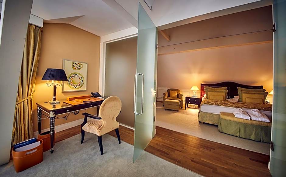 Located in the castle, this suite offers large balconies with views of Lake Wörth. It comes with a double room, a separate living room, and a bathroom with bath and/or shower and toilet. Satellite TV, a safety deposit box, a Nespresso coffee machine and a hairdryer are also featured. These rooms are approximately 187 ft².