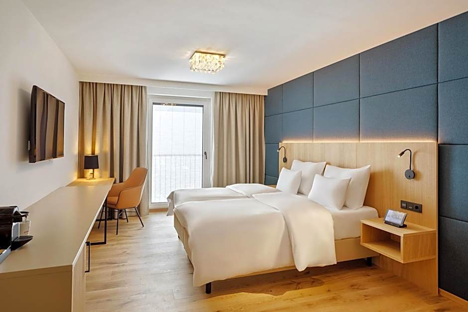 The Austria Trend Hotel Maximilian offers two types of deluxe double rooms. Both rooms have a room size of 269 sqft and can accommodate 2 adults with no children. Smoking is not allowed in either room. The rooms are equipped with a queen-size bed.