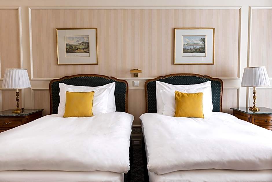 Now let's talk about the room types available at the Grand Hotel Wien. Whether you're traveling alone, with a partner, or accompanied by a child, there is a room to suit your needs. The Standard Room offers a comfortable space with a choice of either a king size bed or two twin beds. For those looking for a little extra space, the 1 King Bed Premium Ring Road View and 2 Twin Beds Grand City View rooms provide a larger floor area. And if you're looking to indulge in luxury, the Premium Room offers a spacious layout with a choice of either a king-size bed or two twin beds. With a variety of room types to choose from, you're sure to find the perfect accommodation for your stay at the Grand Hotel Wien.