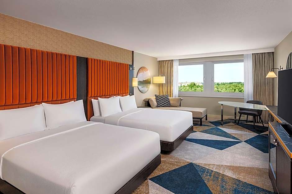 Hilton Vienna Waterfront offers accommodations starting at $100. Keep in mind, room types and dates might affect the final price. For specific rates, input your stay dates.