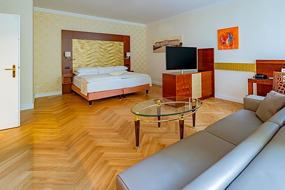 Double Superior Wiener Elegance includes a king-size bed 150-183 width plus extra beds on demand, satellite tv , hairdryer, tea and coffee making facilities , ironing set, and safe and is Wheelchair-accessible.