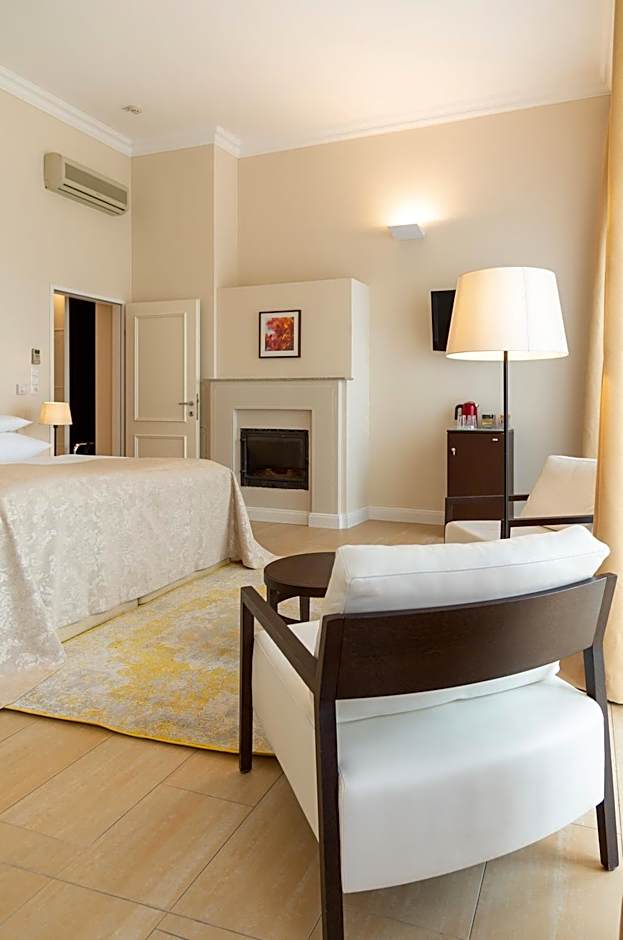Fitted with a balcony or terrace overlooking the garden, this room includes a seating area with a sofa or armchair, desk and heated stoneware floors. Air conditioning, a flat-screen TV, free WiFi, kettle and tea glasses are further amenities. Self-service tea, coffee, and filtered sparkling an non-sparkling water are available free of charge in the lobby One room in this category has sloped ceilings (attic floor).