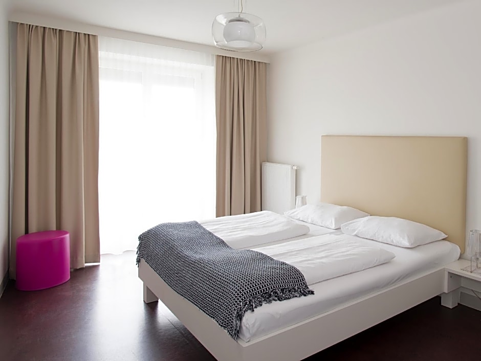 At Stanys - Das Apartmenthotel, guests can choose from Double Rooms with either a Queen size bed or Twin beds, accommodating 2 adults. There are also Apartments available, with sizes ranging from 517 sqft to 592 sqft, suitable for 2 to 3 adults and sometimes 1 child. All rooms and apartments offer non-smoking options and some come with balconies for an enhanced stay experience.