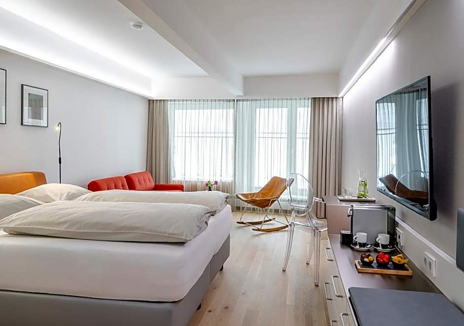 The Boutique Hotel Hauser offers a variety of room types including Deluxe Double or Twin Rooms, Superior Studios, and Economy Double Rooms. These rooms do not allow smoking and have different bed and room sizes. The Deluxe Double or Twin Rooms have one King size bed and a room size of 258 sqft. The Superior Studios have four Twin beds and a room size of 323 sqft. The Economy Double Rooms have one Queen size bed and a room size of 215 sqft.