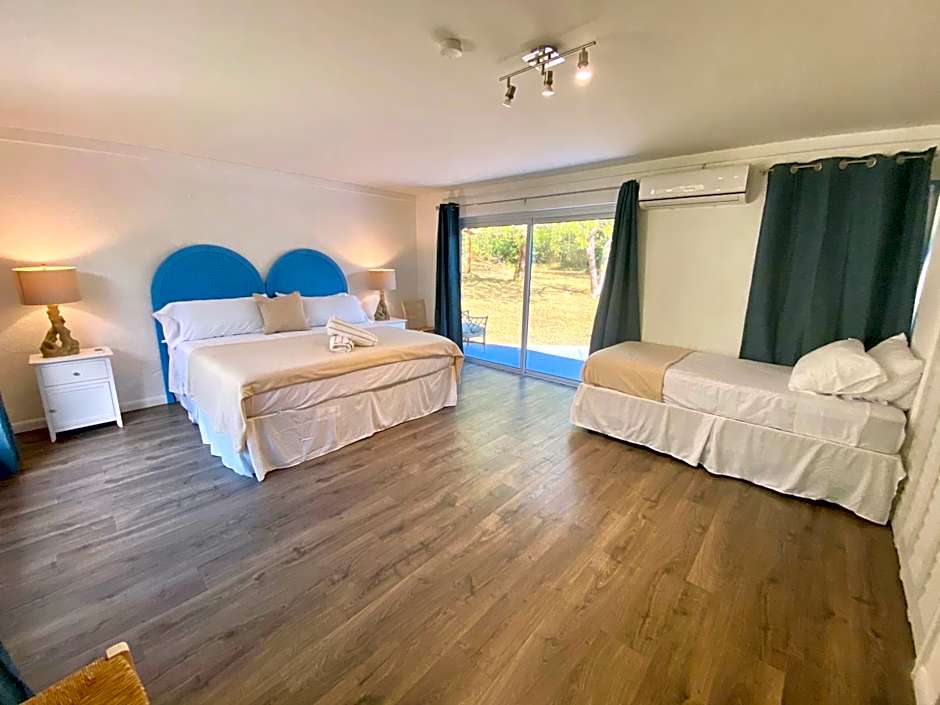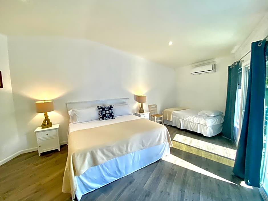 The pool with a view is the standout feature of this family room. The family room features air conditioning, a private entrance, a terrace with garden views as well as a private bathroom boasting a bath. The unit has 2 beds.