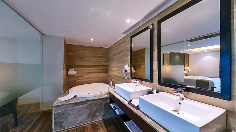 Indulge in a culinary journey at as you explore the variety of dining options available on-site. Start your day with a delightful breakfast at The Golden Dine, offering a blend of American, Chinese, Indian, Thai, and more cuisines in a family-friendly, modern, and romantic ambiance. For a casual dining experience, head over to Cafe De Tulip, where you can savor American, Chinese, Indian, and Japanese dishes, along with pizza and international flavors. If you're in the mood for seafood or grill and barbecue specialties, treat yourself to a meal at Skyline Tulip, where American, Chinese, Indian, and local cuisines await.