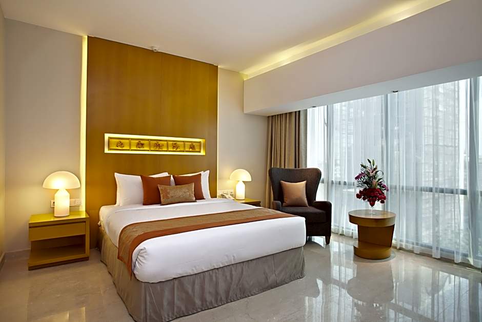 The hotel offers Executive Premium Deluxe rooms, which are double occupancy rooms with a size of 398 sqft. Smoking is not allowed in these rooms and they are equipped with a double bed. Each room accommodates 2 adults with no provision for children.