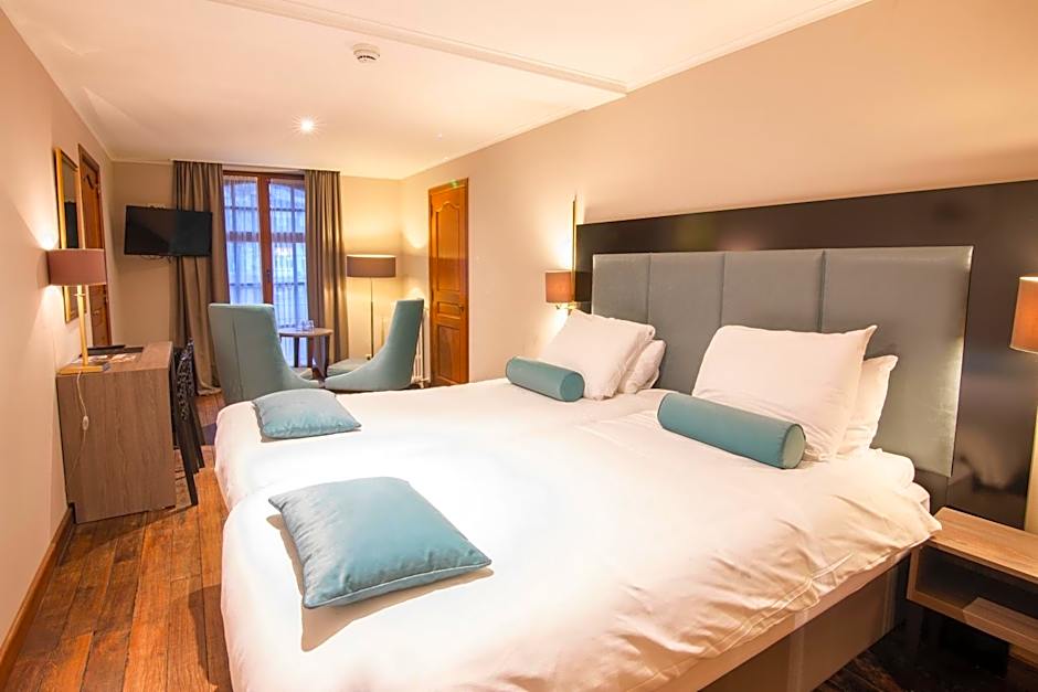 The Hotel de la Poste - Relais de Napoleon III offers a Double or Twin Room with a River View, which can accommodate 2 adults and has a room size of 258 sqft. Smoking is not allowed in this room, and it has both twin beds and a double bed. Additionally, the hotel offers a Standard Twin Room with a room size of 194 sqft, twin beds, and can also accommodate 2 adults. Smoking is not allowed in this room as well.