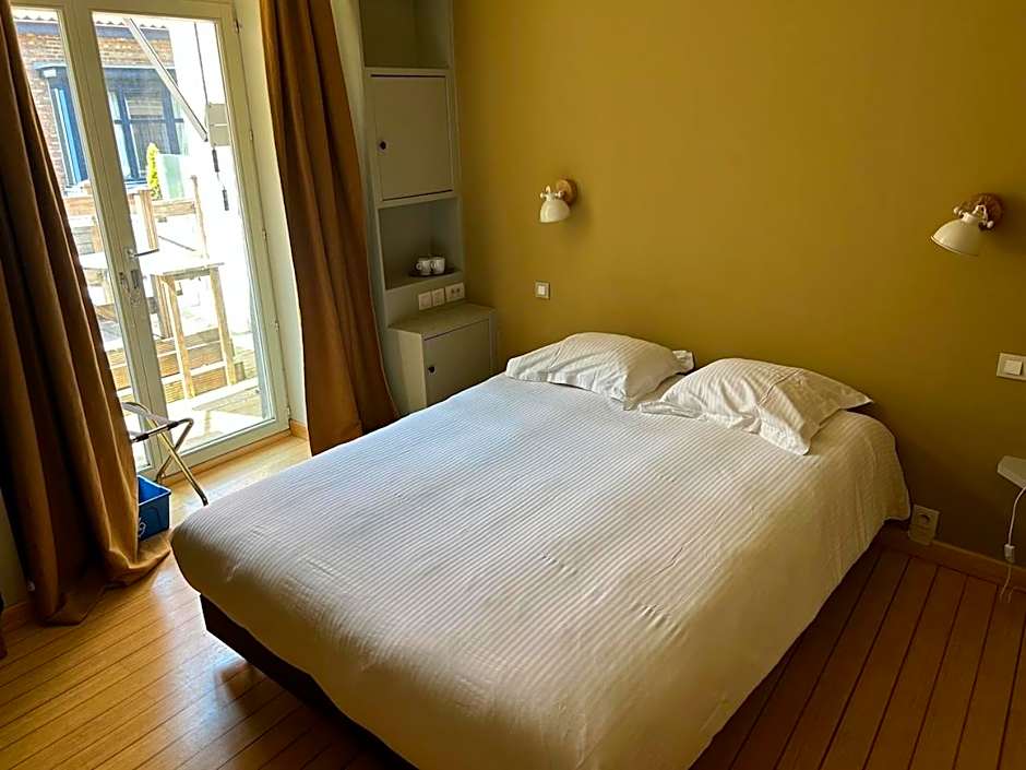 This spacious room is located between the ground and first floor. The large patio offers a view of the Saint-Saviors Cathedral. The kingsize bed is located on a mezzanine. The room also features a seating area and kitchenette. The bathroom comes with a freestanding bath and walk-in shower. This room has one kingsize bed and a sofa-bed .