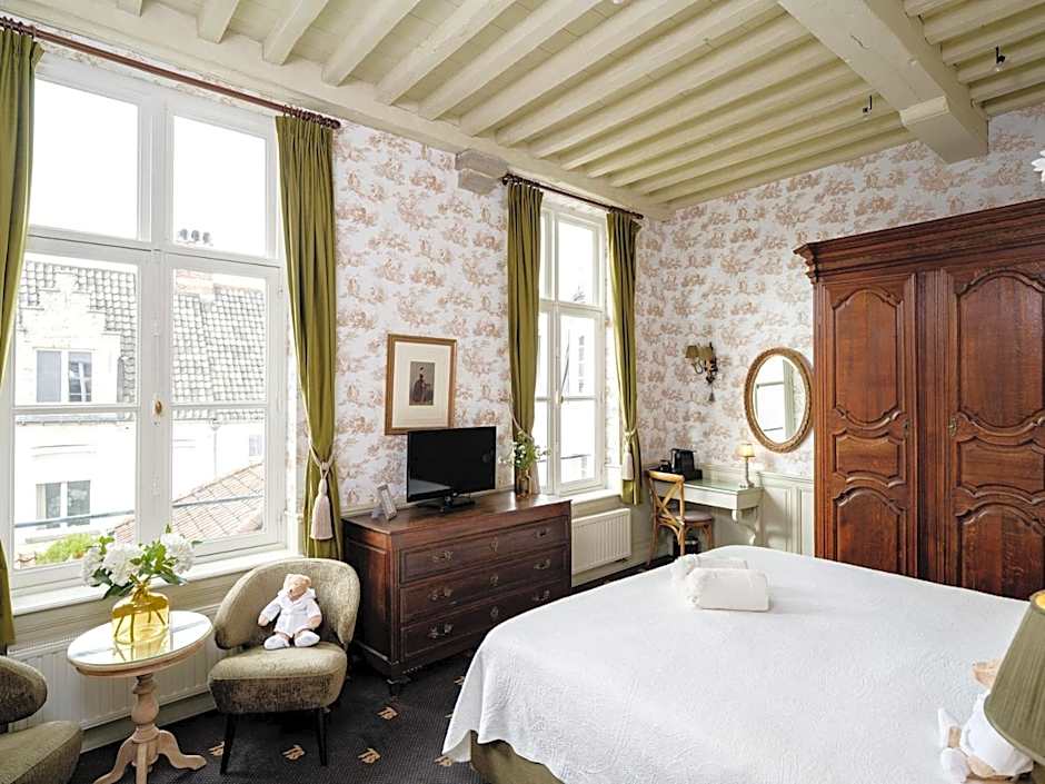 A lovely old-fashioned hotel. We had a standard room – 13 - overlooking the canal with a very good view. It was quite small, though apparently one of the larger ones, but had a large double bed. It has no restaurant but a bar and a garden for sitting out. The stairs to the first floor are steep and would not suit elderly/infirm. A magnificent breakfast which lacked absolutely nothing. The reception staff are charming and extremely helpful. Easy less than ten-minute walk to the main square and less than five minutes’ walk to Pieter Pourbus, Tom’s Diner and Orfeo restaurants which I review separately. We spent a very happy four nights there. Easy 20-minute bus trip from the station on line 2 bus.