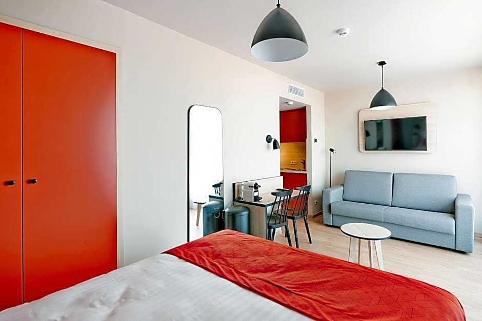 At Appart'City Confort Bruxelles Centre Gare du Midi, the hotel offers Superior and Standard Studios. The Superior Studio is 205 sqft and can accommodate 3 adults and 1 child, with 1 Sofa Bed and 1 Queen size bed. The Standard Studio is 183 sqft and can accommodate 2 adults and 1 child, with either 2 Twin beds or 1 Queen size bed. Smoking is not allowed in any of these rooms.