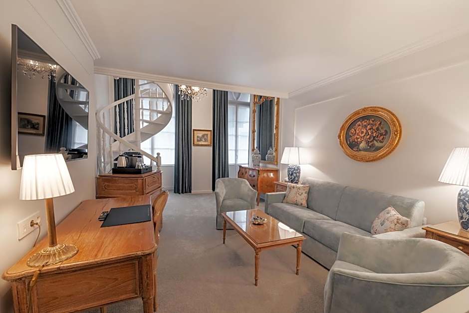 This air-conditioned Duplex Junior Suite comes with flat-screen satellite TV, a desk in the living room, a mini-bar, a safety deposit box and coffee and tea making facilities. On the second floor the bed room with Twin or Double bed consists of an en-suite marble bathroom fitted with a bathtub, a hairdryer, bathrobes and free toiletries.