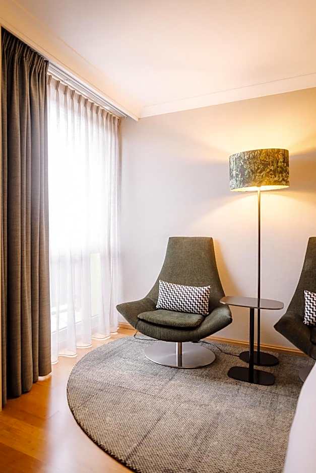 Modern, very clean, and big rooms. We liked the divan in the room. Was very surprising. Not an average hotel room furniture. Hotel is very well equipped with fitness room, billiard table etc. We liked the 24h vending machines in the hall. Many happy people playing billiard or having fun at the bar, good vibes on our arrival in the evening. Even though next to the airport, to our surprise the room was very quiet. Being in the "pampas", you have much space for walking your dog.