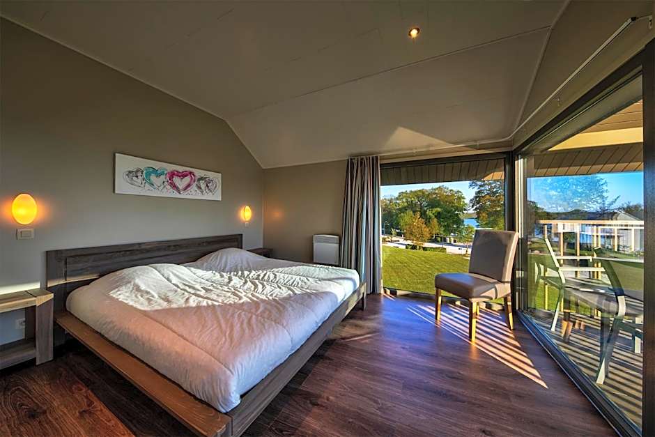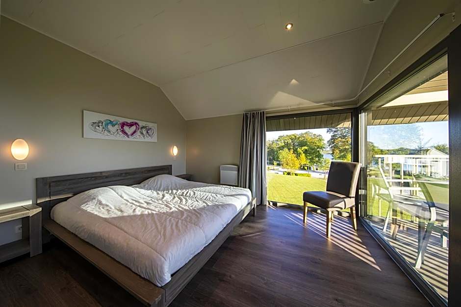 A range of accommodations is offered, including studios with kitchenettes and sofa beds with lake or garden views, standard rooms with twin beds and lake or garden views, and villas with varying layouts. All accommodations are non-smoking. Accepted payment methods include Mastercard, Visa, Maestro, and Bancontact, with cash not accepted.
