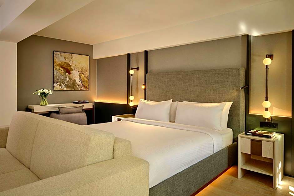 The Ghent Marriott Hotel offers a variety of room types including suites, doubles, and family rooms. The rooms range in size from 269 sqft to 538 sqft. All rooms have a non-smoking policy and can accommodate 2 adults and 1 child. The beds in the rooms vary, with options including a king size bed or two double beds.