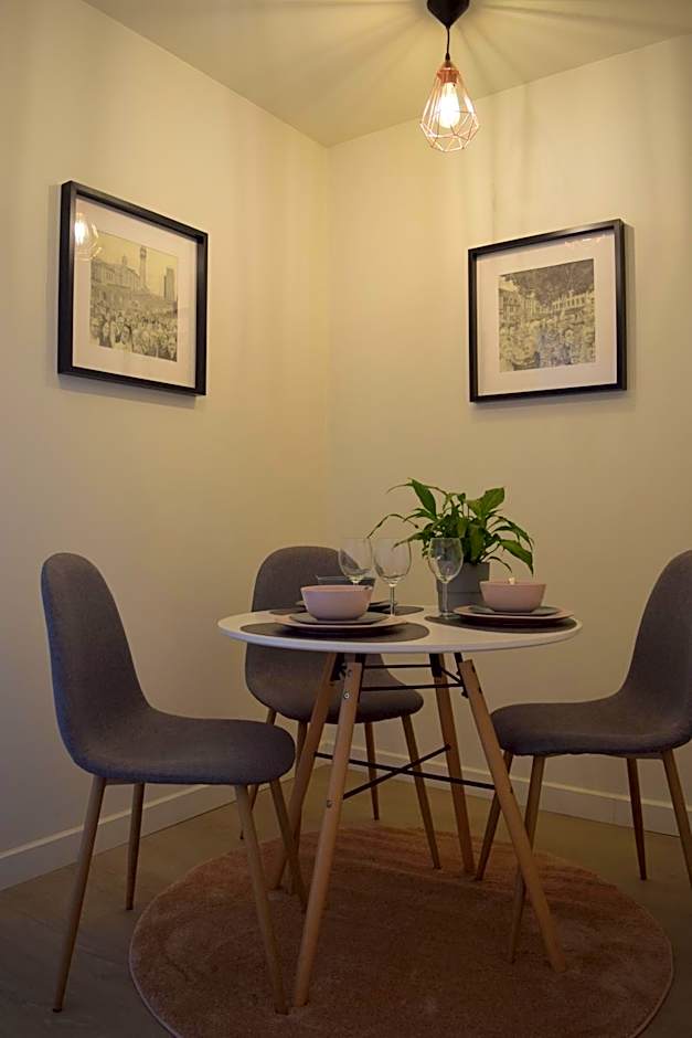 The apartment is in an excellent area. It is very close to lots of good restaurants (Taco Santo, Golden Gai - were two we tried and loved). Walking to a more commercial area is approximately ten minutes. It's great that it is so close, but yet far enough away that you don't hear any noise from the energy. Most of Ghents' main attractions are a comfortable walking distance. The apartment itself was decorated in a very modern and pleasant way. The unit was very clean with nice touches like an instant coffee maker, complimentary water and beer, a microwave, and cups for coffee and beverages. Our unit was one without a kitchen, so those little amenities really appreciated. The flat had a huge bedroom with an attached toilet and a large bathroom. The vanity had dual sinks, and the walk-in shower was large with great pressure and water temperature. The living room was bright and comfortable with a very good pullout sofa. With the provided mattress pad, it was excellent to sleep on. We didn't use the loft bed, but it was an interesting feature. The host was very attentive and committed to her guests. She gave us a thorough walk through of the unit upon arrival and made sure we had everything we needed. She was very responsive when messaged and did a check-in with us part way through our stay. The service with this apartment was as good as the unit.