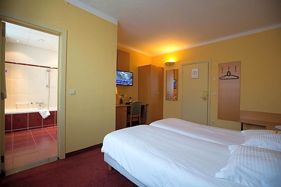 The spacious double room features air conditioning, soundproof walls, as well as a private bathroom boasting a bath and a shower. The double room has carpeted floors, a seating area with a flat-screen TV with satellite channels, a coffee machine, a wardrobe, as well as a safe deposit box. The unit has 1 bed.