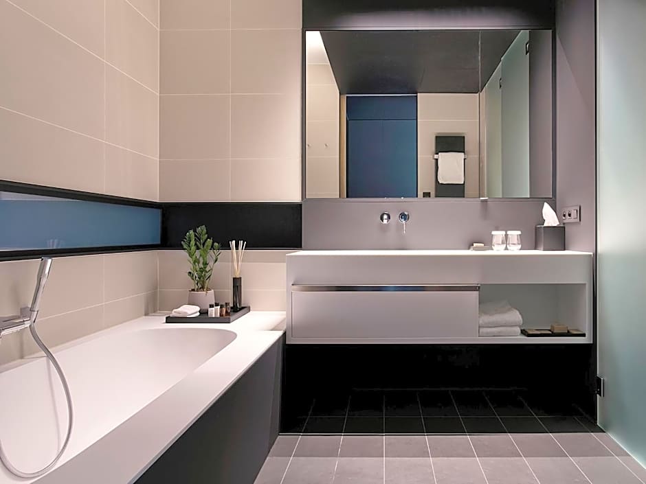 Boasting a private entrance, this air-conditioned suite includes 1 living room, 1 separate bedroom and 1 bathroom with a walk-in shower and a bath. The spacious suite offers soundproof walls, a mini-bar, a tea and coffee maker, a seating area, as well as a flat-screen TV with cable channels. The unit has 1 bed.