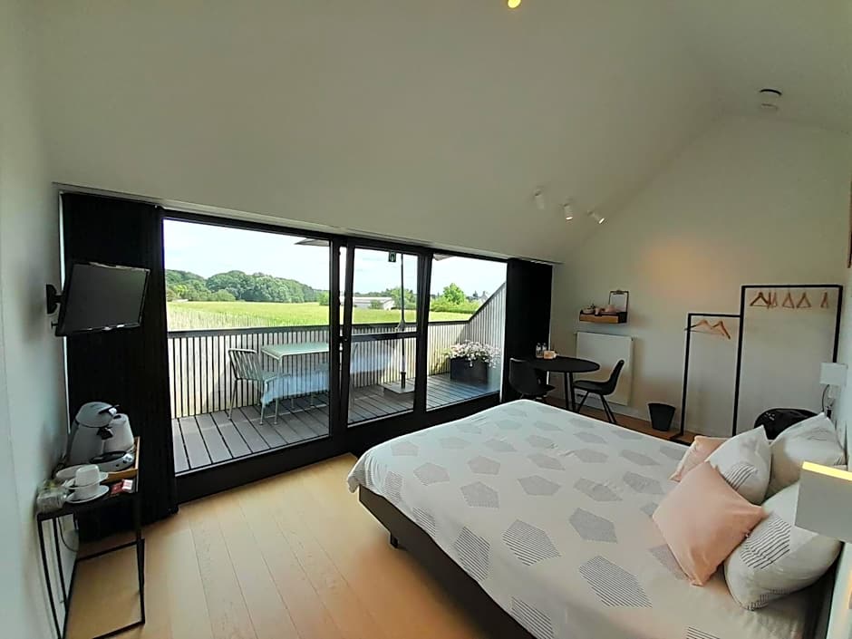 Experience a touch of luxury during your stay at B&B De Stuifduinen with the option to upgrade to a room featuring a tennis court. Ideal for sports enthusiasts looking to stay active during their vacation, this additional amenity promises hours of fun and recreation (extra charges may apply). Embrace the tranquility of the surrounding landscape from your balcony while enjoying a friendly match or two on the on-site tennis court. Enjoy a unique and memorable stay at this charming bed and breakfast in Wetteren, Belgium.