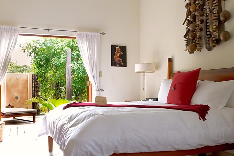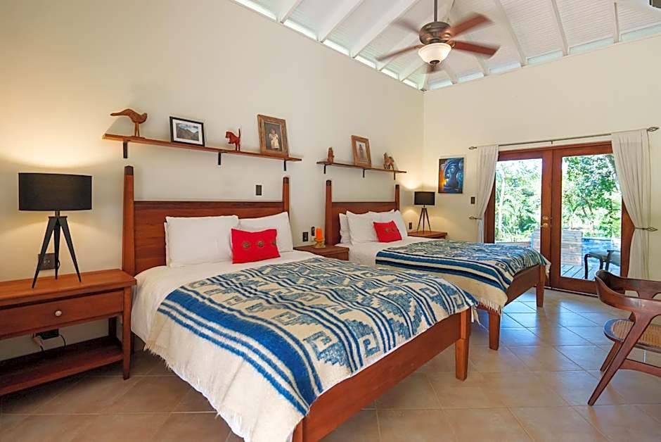 This spacious, luxurious room is set in a small house surrounded by landscaped gardens and tropical fruit trees. Decorated with local artwork, it has a terrace, a seating area, an iPod dock, flat-screen TV and free Wi-Fi. Rates include continental breakfast.