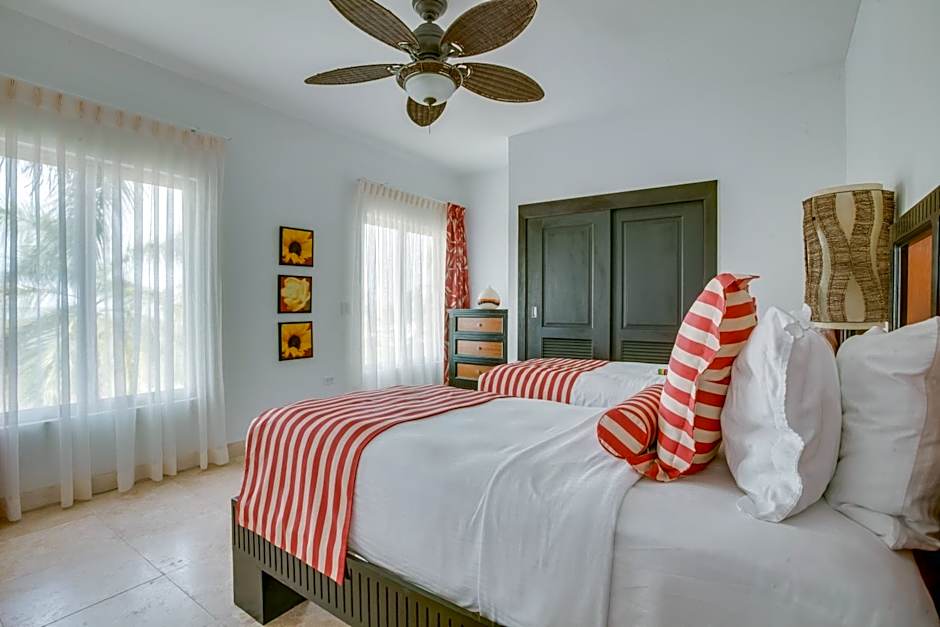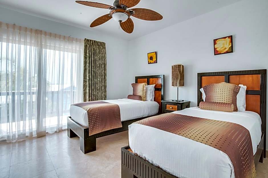 This stylish, air-conditioned villa offers free Wi-Fi, an iPod dock and flat-screen satellite TV. It has 3 bedrooms, 2 bathrooms, a living-dining area and a large patio. The modern kitchen includes an oven, dishwasher and washing machine. Three Bedroom has a maximum occupancy of 6 guests with a King in the Master, Queen in the second bedroom and 2 Singles in the third bedroom. Another King can be requested in lieu of the 2 singles at least 72 hours prior to arrival.