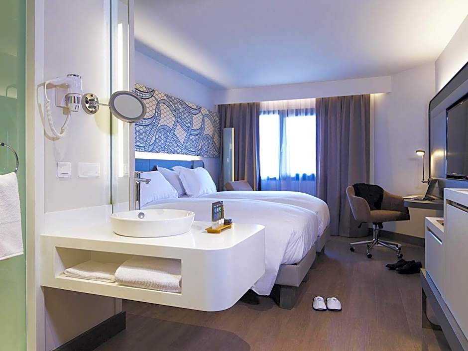 Guests at the Novotel Cotonou Orisha can indulge in leisure amenities such as the outdoor swimming pool reserved for adults only, providing a serene environment to relax. Families can also enjoy the kids' pool. The hotel features a restaurant serving French cuisine, offering a delightful dining experience for guests. For those seeking relaxation, the spa with Turkish/Steam Bath, hot tub/Jacuzzi and sauna provides a perfect escape. The hotel also offers a sun deck and terrace for unwinding, and a garden and picnic area providing a pleasant outdoor space. Moreover, there are provisions for children with a kid-friendly buffet available. Live music and performances, along with a bar, add an extra touch of entertainment and enjoyment for the guests during their stay at the Novotel Cotonou Orisha.