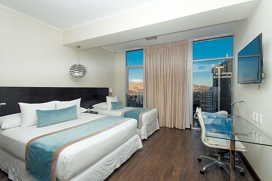 This double room has a king-size bed, heating, air conditioning, a work desk, a digital 19 inch safety deposit box, a 32 inch Led TV, a private bathroom with rain shower and a hairdryer, and free Wi-Fi access. It features stunning views of the Illimani Mountain.